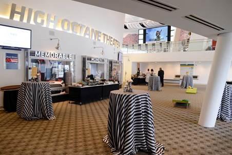 The Theater Lobby is a flexible space on the lower level of the museum that can be used for several different types of events. This space has full windows and doors that open to the street level and an open ceiling allowing for a lot of light in the space. There are also (2) screens located in the space that can be used to showcase a video or logo during the event.