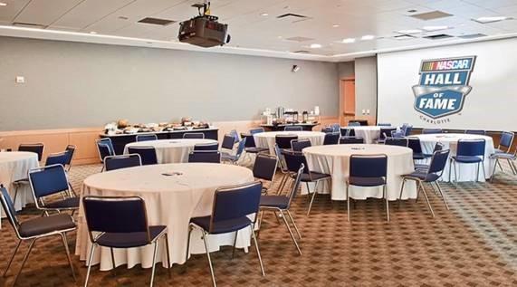 This space features 1,500 square feet of enclosed space at the NASCAR Hall of Fame. It does have a built-in screen and projector for a presentation or photo slideshow.