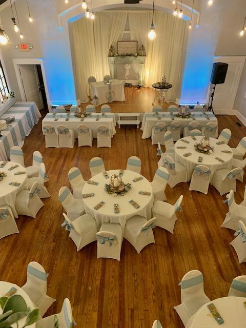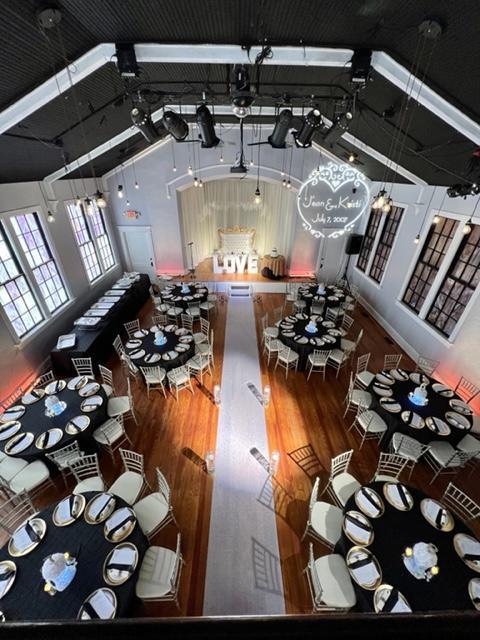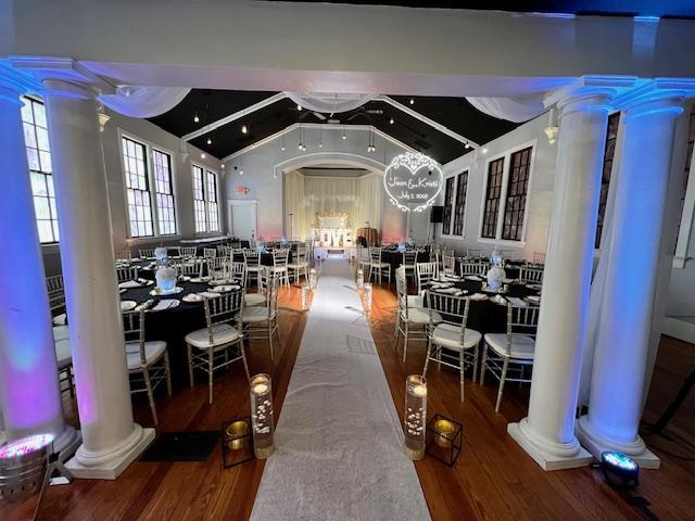 -Stage area with lighting -Loft area -Bar area -Tables, Chiavari Chairs and Table Linens