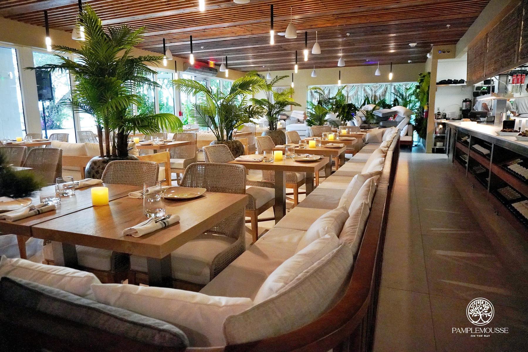 Pamplemousse on the Bay is a unique, upscale waterfront venue that redefines effortless chic Miami! With exquisite culinary offerings, masterful mixologists, versatile event capabilities, sophisticated interior design, open kitchen, a serene Mediterranean patio, and a distinctive sand seating area, every element is carefully curated to create an unparalleled experience. Our seasoned staff is dedicated to delivering seamless hospitality, inviting guests to relax in a Miami-chic waterfront ambiance. As the evening unfolds, bask in the glow of our signature Miami sunset — a breathtaking view that only Pamplemousse on the Bay can provide.