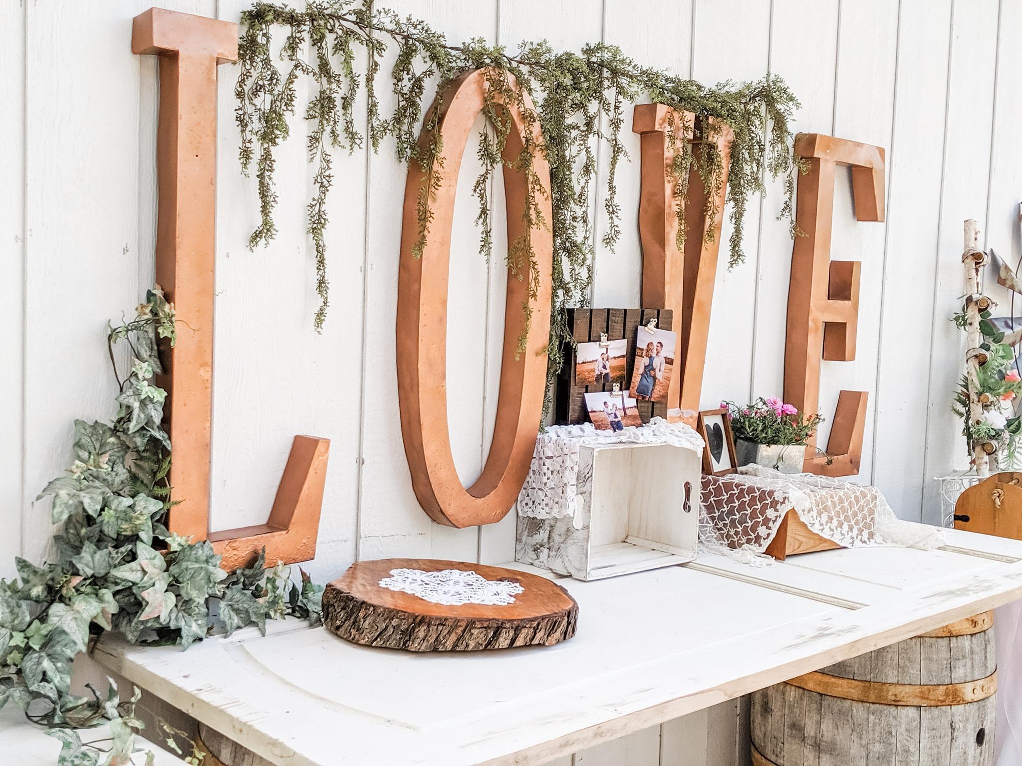 In this package, the bride would have access to all venue decor options and decorating services including: centerpieces, doors, mason jars, whiskey barrels, lights, vintage furniture, etc. Unlimited, on-call Event Director; Shelly Trowbridge 10 Hours of Hired Help to Serve Meal + Refreshments + Cake