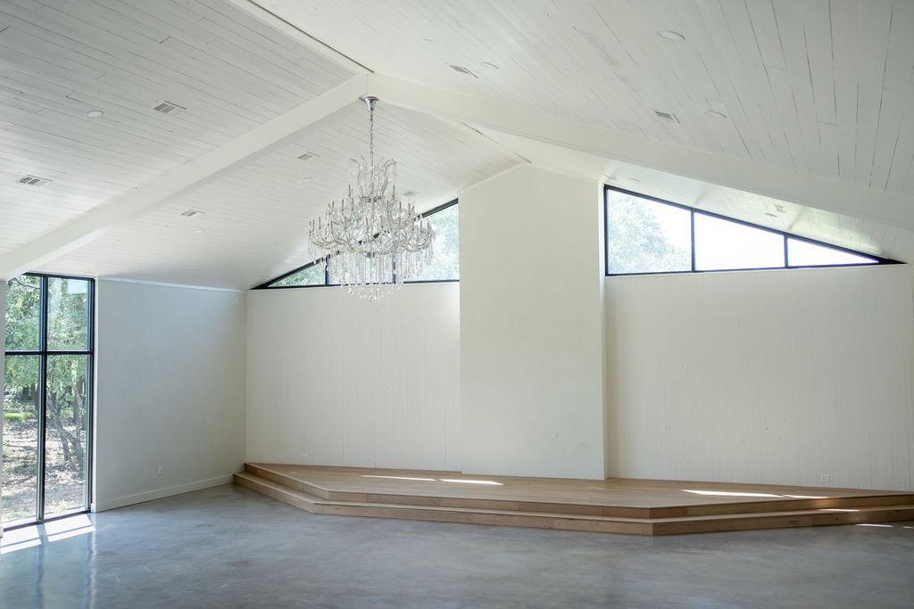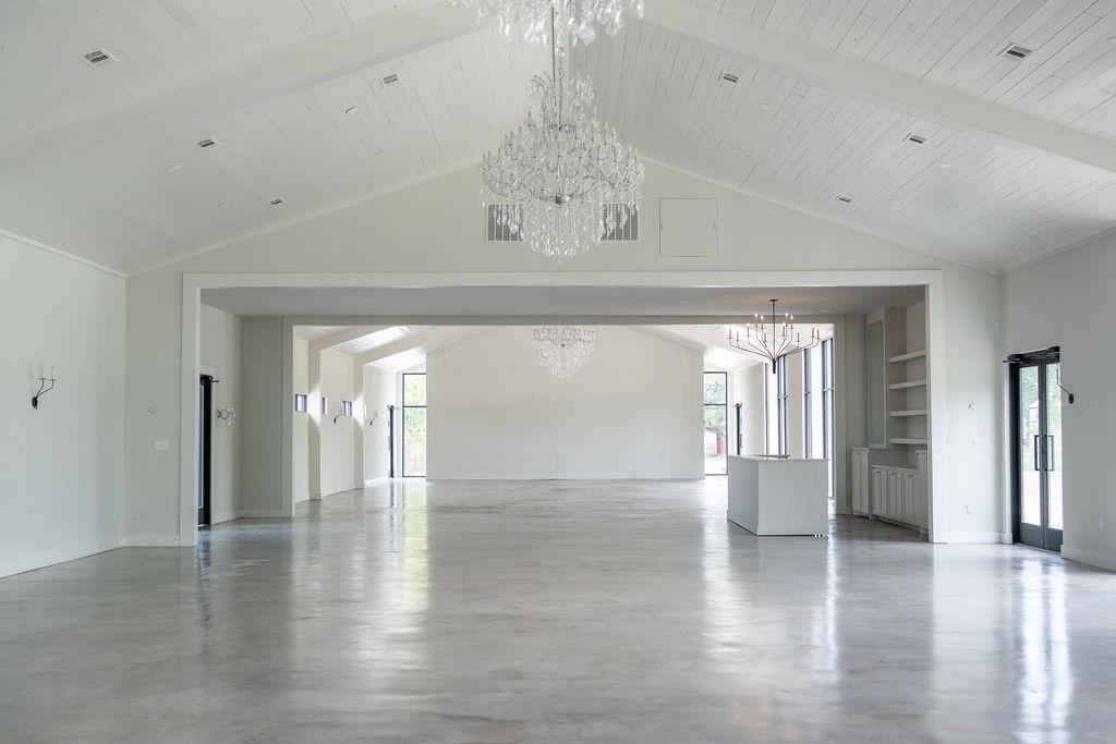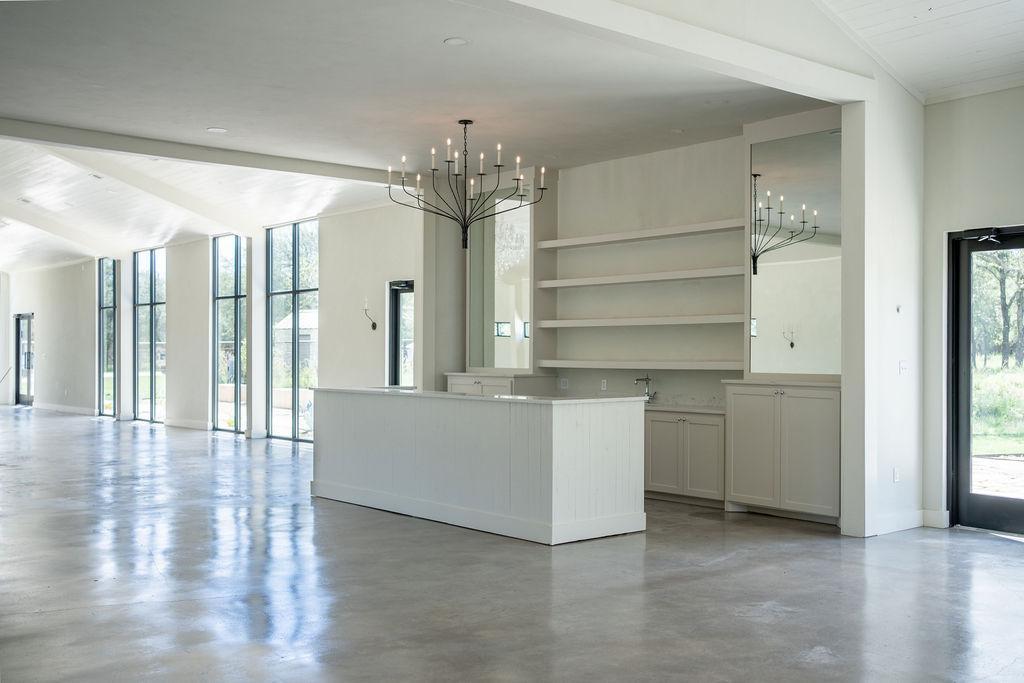 The interior, full of texture & natural light, is an elevated canvas that invites you to bring your dream wedding aesthetic to life whether that is more simple & classic or elaborately designed to your unique vision. Everyone loves the beautiful central bar area & custom built-ins that provide a design focal point & ultimate guest experience, and the statement crystal chandeliers that create a stunning ambiance.