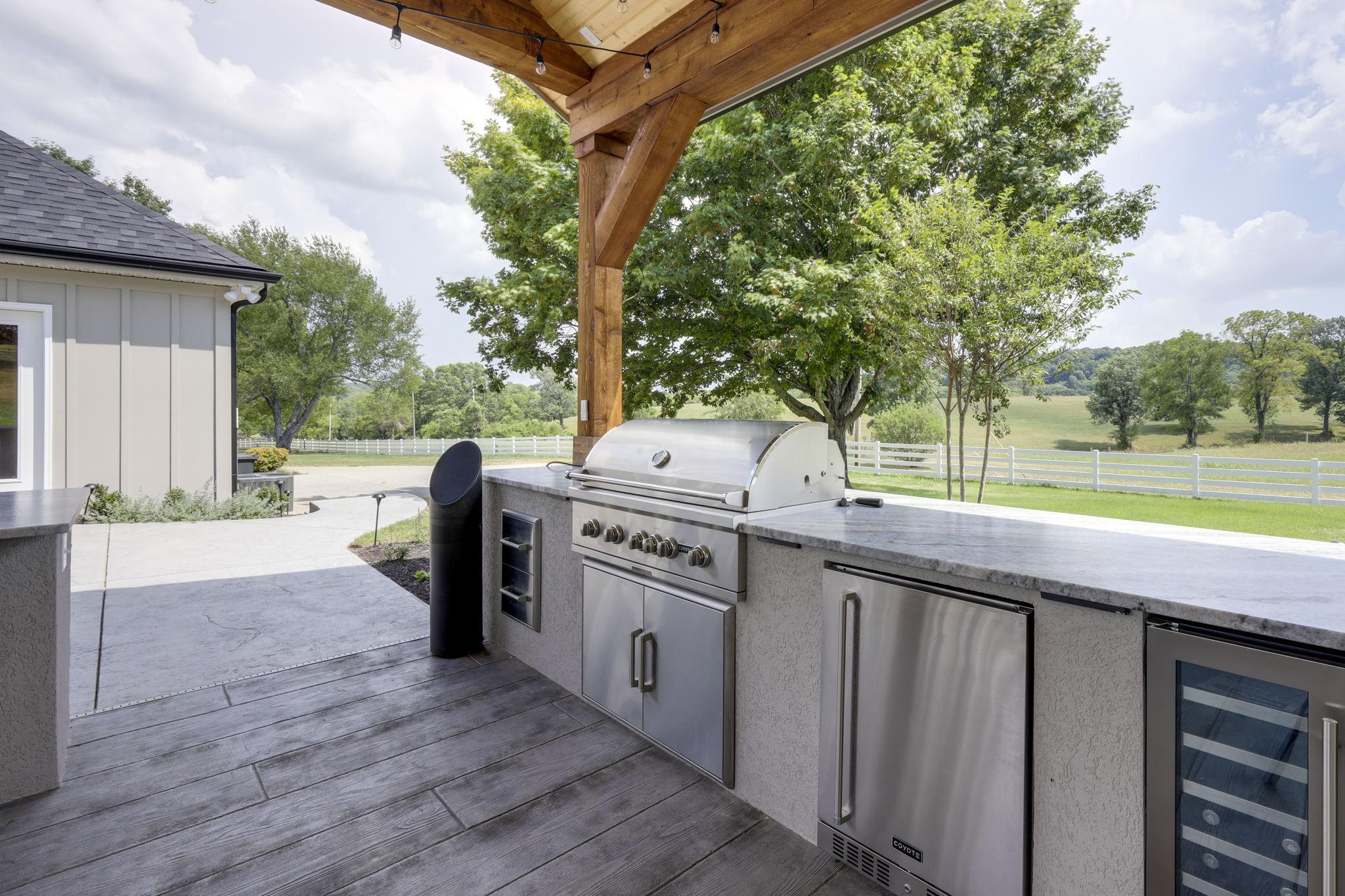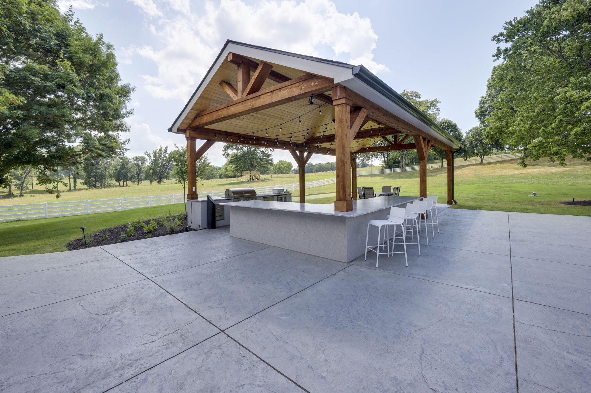 - Outside string lights, illuminate the entire covered patio area - Large gas grill - Wine fridge & refrigerator for storing food - Large marble countertop - Large covered awning for weather protection - Poolside seating - Bocce ball court - 3000sqft gold green