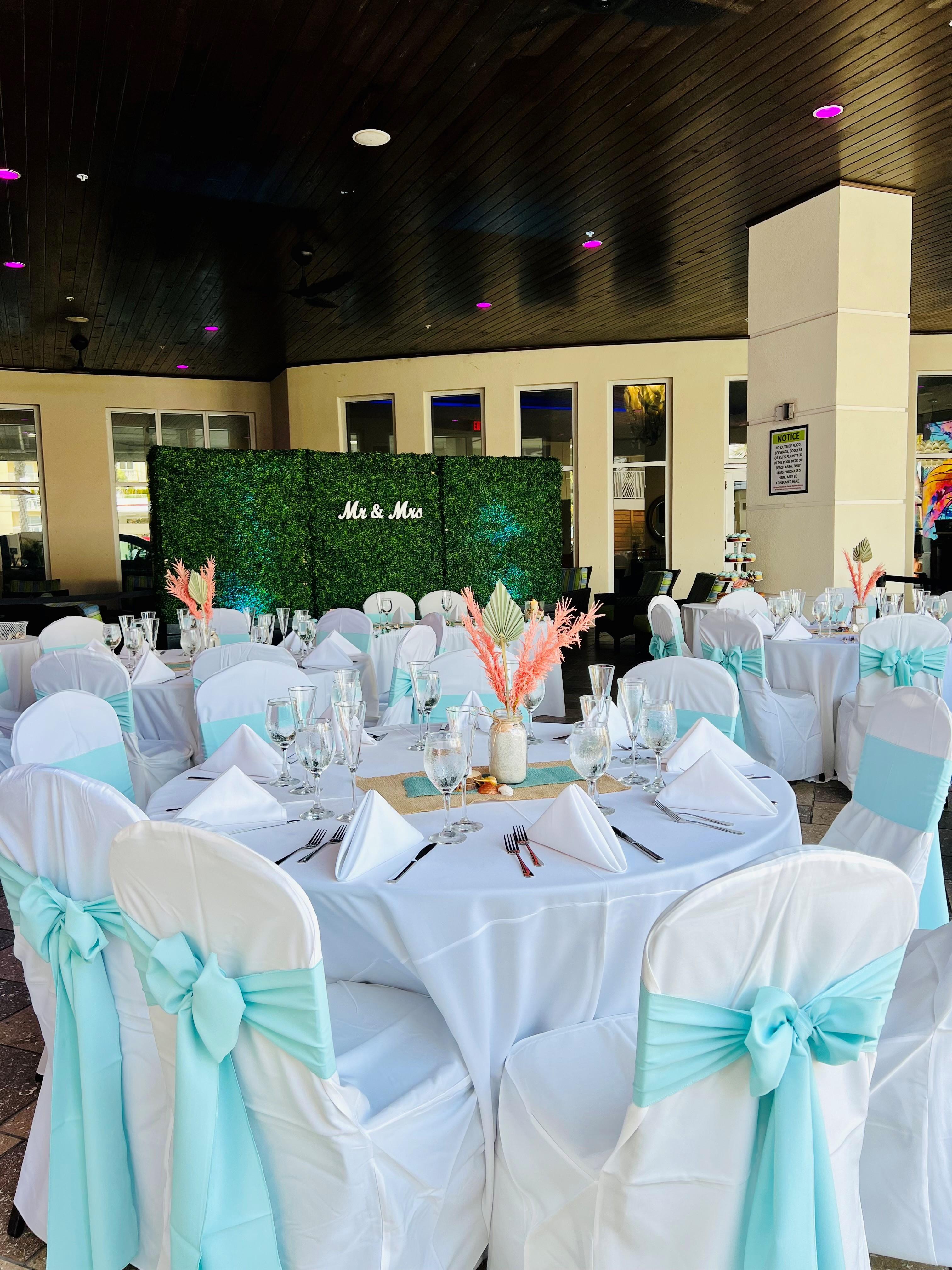 Semi-private and entirely outdoors, the Pool Terrace is the perfect casual, semi-private reception venue with space for a private bar and buffet set up. Enjoy the daily live music in the background as you dine, dance, and celebrate!