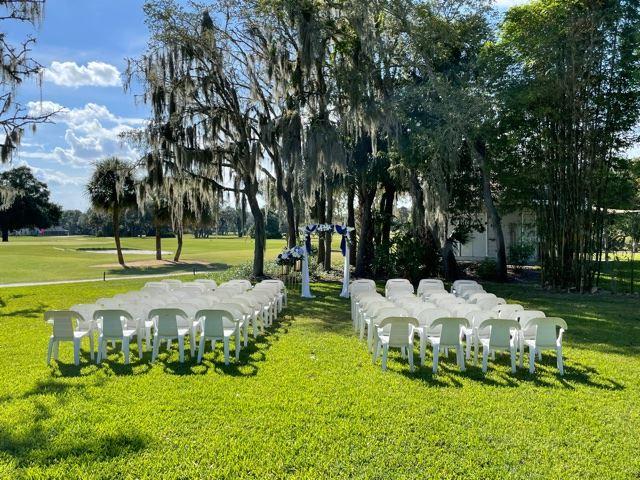 Our newly renovated clubhouse features a large Sunset Room with windows overlooking the driving range, a bar and restaurant area for private parties, and an open-air, covered breezeway with an outdoor deck for your private event. Our large resort-style swimming pool is the perfect backdrop for a warm Florida evening, and the adjacent grass lawn can be transformed into a wedding garden or tropical paradise for both large and small gatherings.