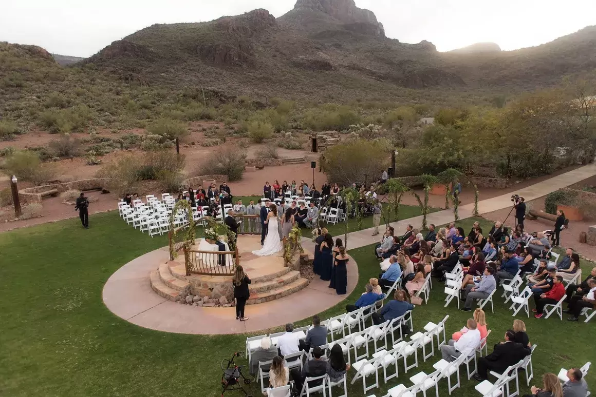 The Sunset Vista provides 3,000 square feet of outdoor space to host your heartfelt wedding ceremony. Here, you and your beloved can exchange vows against the breathtaking backdrop of the Tucson Mountains. Afterward, guests can transition to the Catalina Terrace, the venue’s 5,000-square-foot patio space. Set against the Catalina Mountain Range, this area is ideal for a relaxed cocktail hour while the newlyweds take advantage of the property’s scenery for their wedding photos.