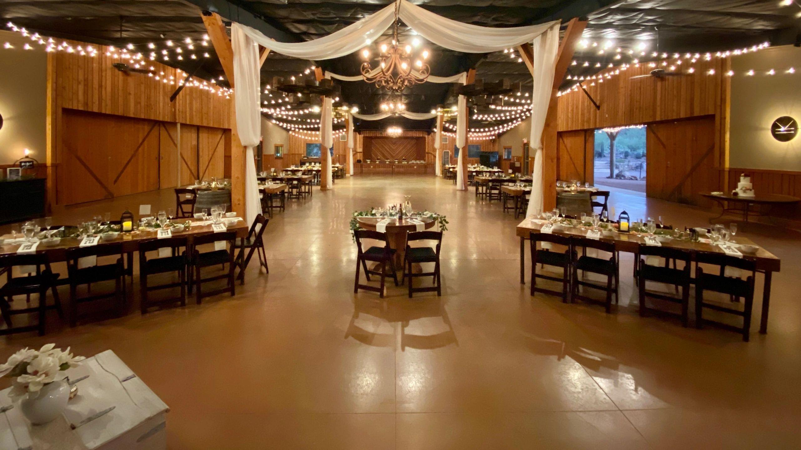 A barn-style space, it is effortless rustic and welcomes couples to decorate as they see fit