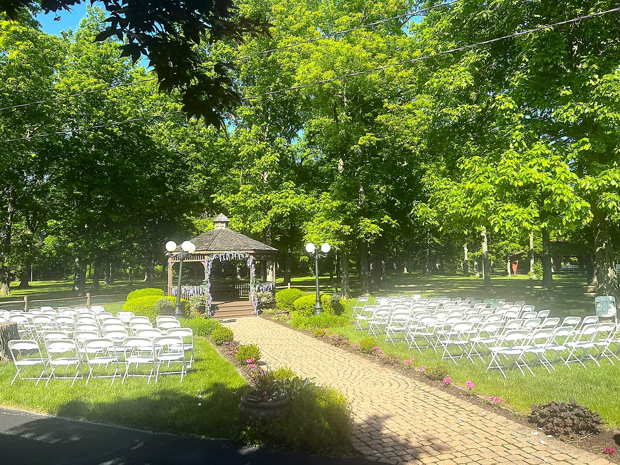 Our wedding turned out to be everything we dreamed of and more! Mary and the rest of the staff really went above and beyond to help us make our day special. The hall and outdoor space were perfect. The park is lovely and offers so many possibilities for ceremonies. Our gazebo ceremony though was really the fairytale wedding that I have always dreamed of. The food was also fantastic, our guests went on and on about it even after the wedding. We can not thank Mary and the staff enough for everything they did to make our dreams come true.