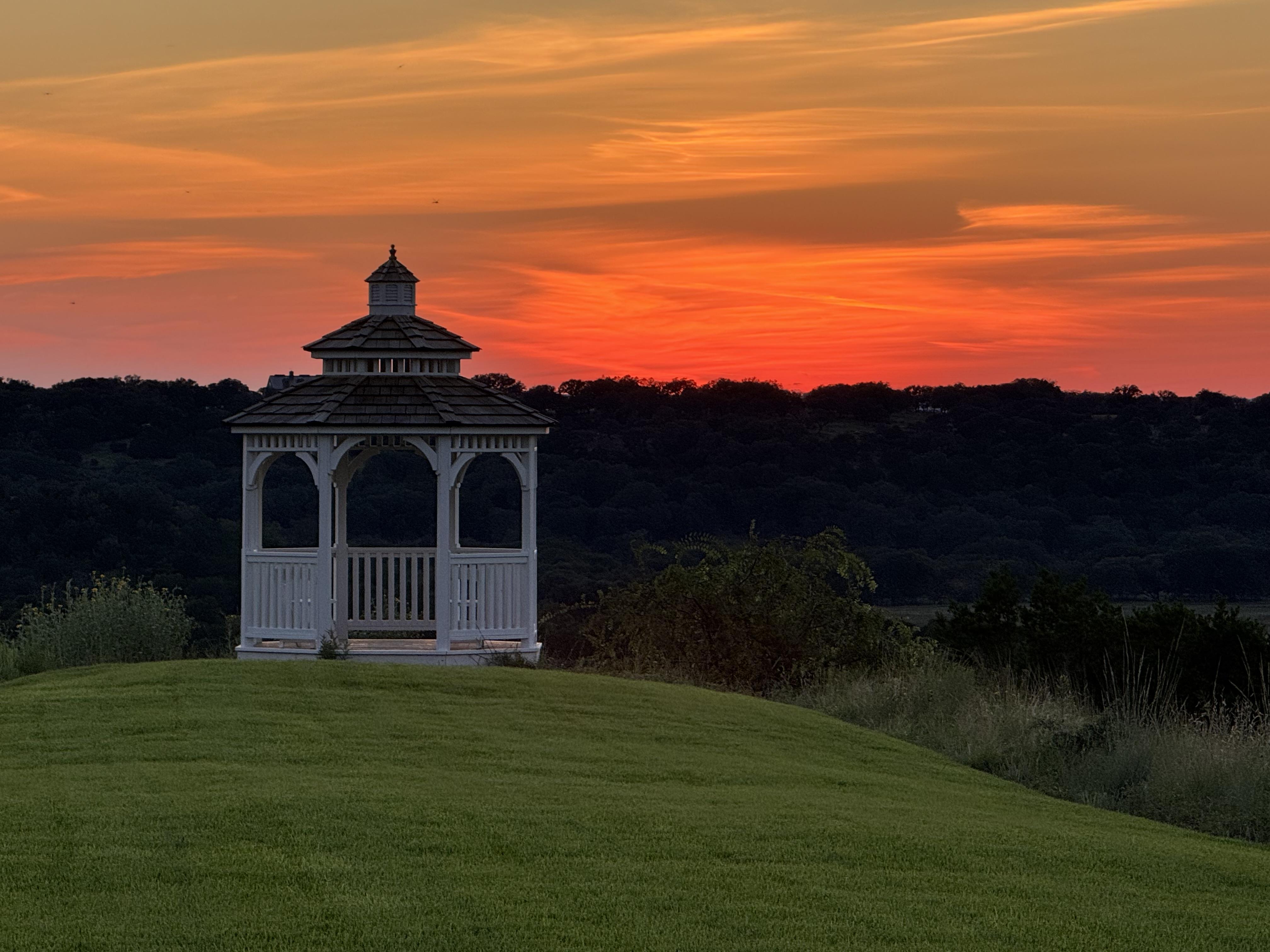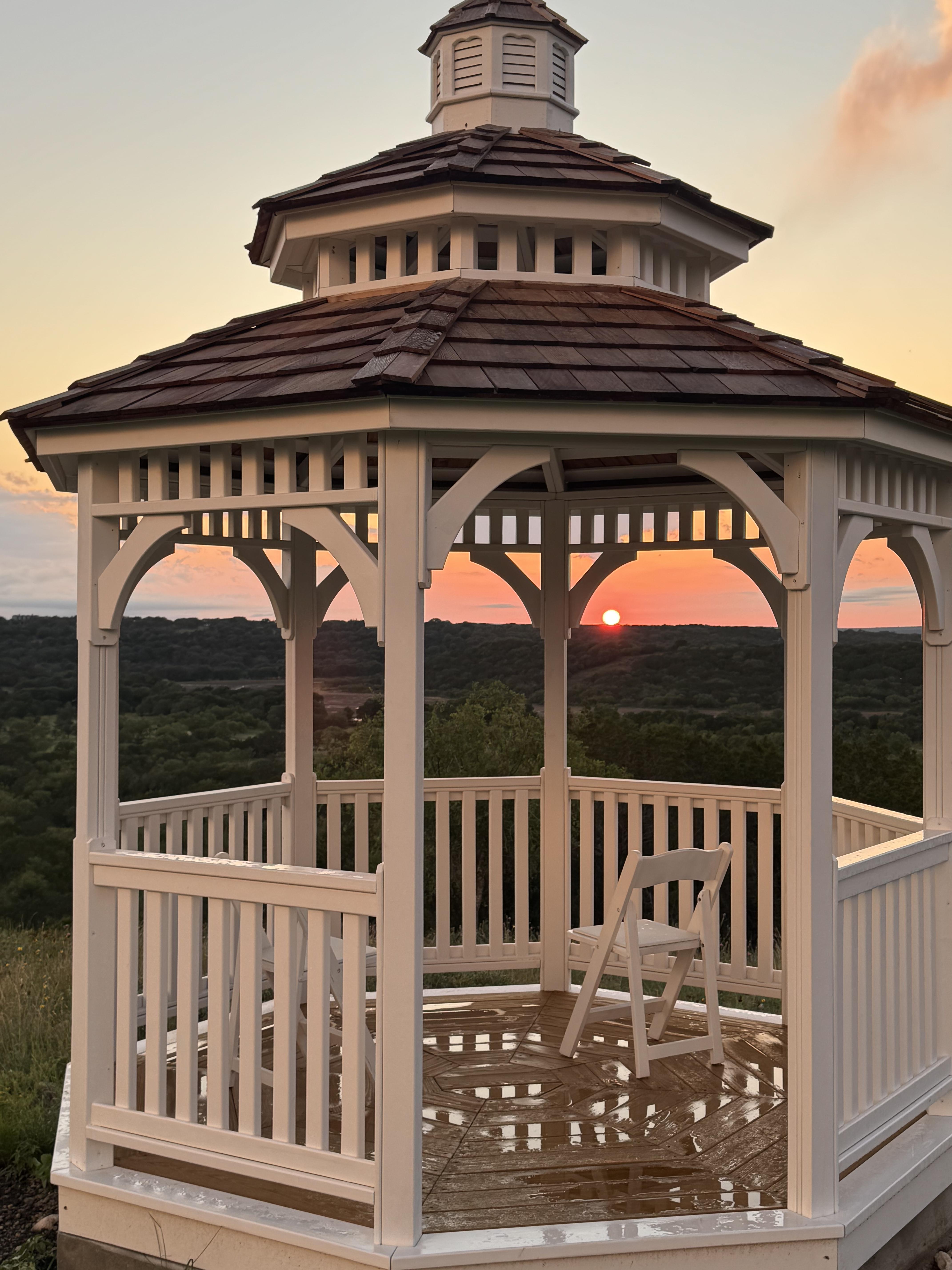 This beautiful gazebo features stunning views of the ranch and has sunsets that you'll never forget. The perfect place for wedding or engagement pictures or an evening cocktail or glass of wine.