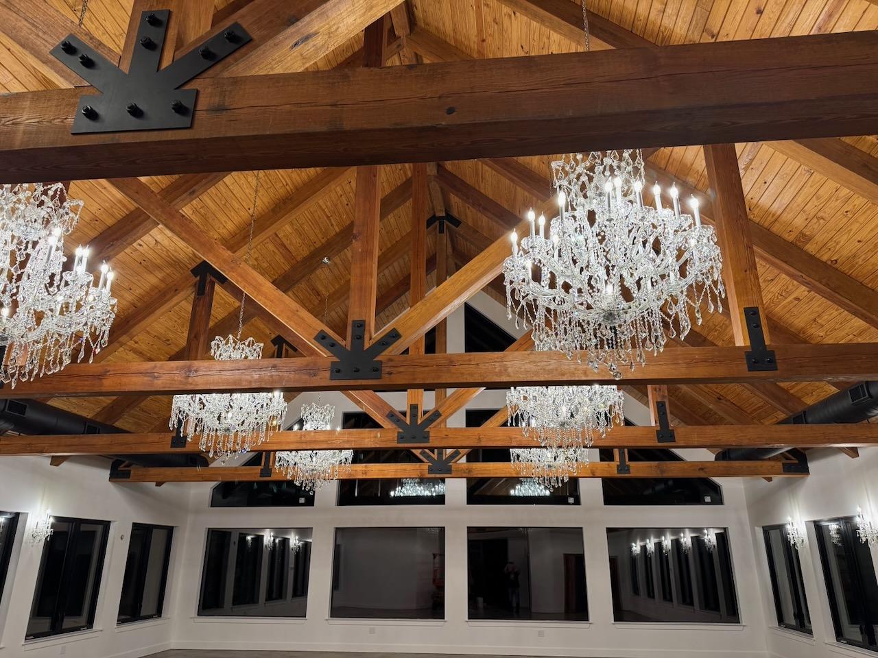 Setup for the ceremony. Setup and takedown of chairs for the ceremony. Table and chairs with table coverings. 8 beautiful Crystal Chandeliers 12 Crystal Sconces