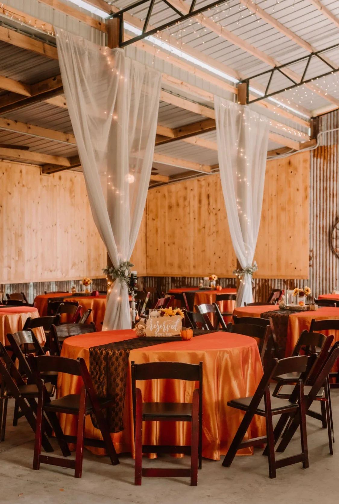 Our package includes: Fully Air Conditioned Barn ♥️Wedding planner and day coordinator ♥️Bridal and Groom suites with A/C ♥️Paver ceremony area under oak tree ♥️Round tables ♥️Red Mahogany chairs ♥️Red Mahogany ceremony benches ♥️Linens (of choice) ♥️Décor (of choice) ♥️Barn décor ♥️Reception site in the barn ♥️Draped linens/lights ♥️Staff ♥️Set-up/Clean-up ♥️Lazy P Ranch exclusive DJ ♥️Dumas Drinks (Bartender) ♥️Corn hole