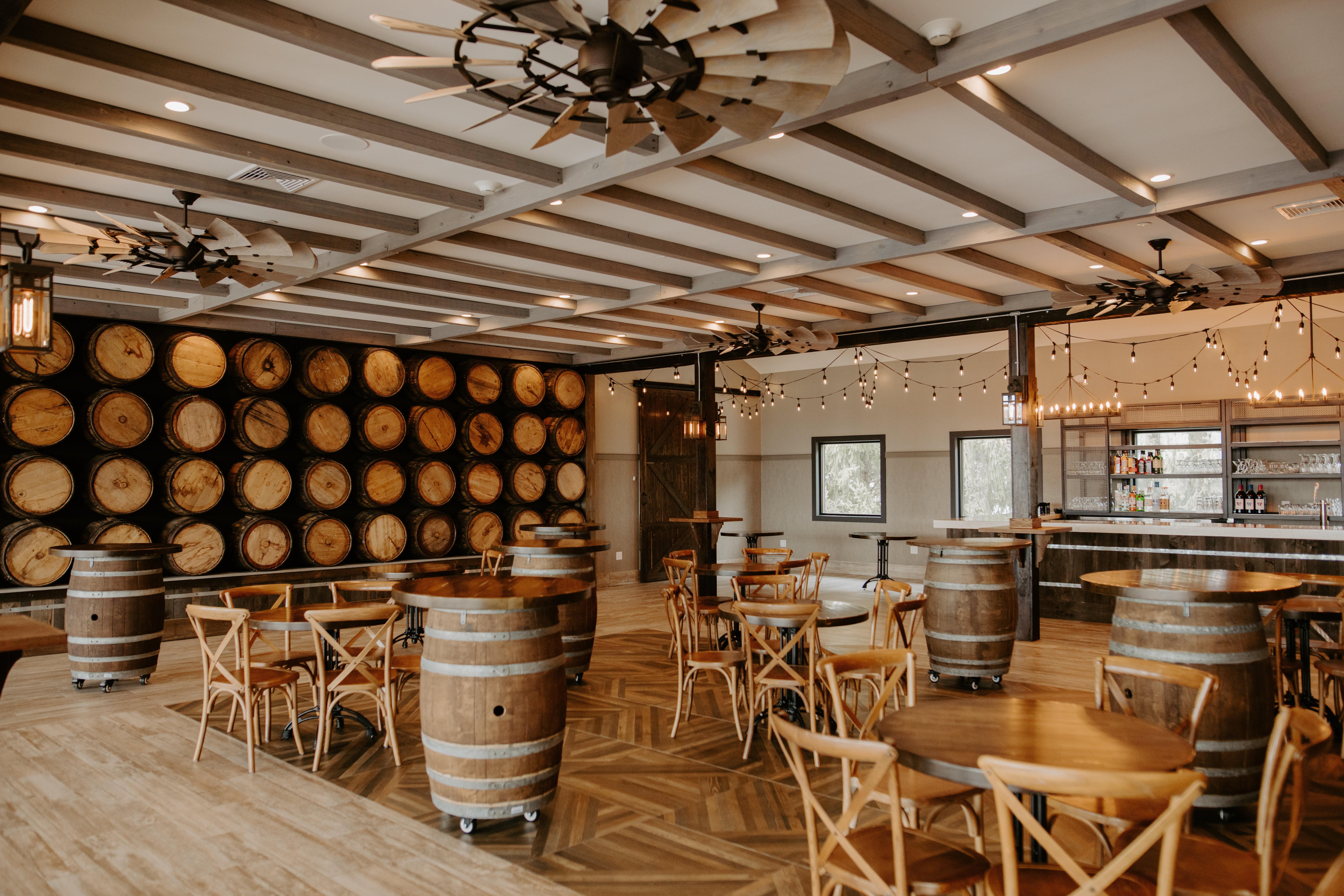 Tucked just above the main level, this cozy space is full of warm wood, exposed beams, and rows of barrels that give it that rich, inviting feel. It’s perfect for gathering with your wedding party, welcoming loved ones, or keeping the celebration going after the last dance. With room for up to 75 guests, it’s the kind of spot where you can kick back, connect, and make some really special memories—right here in the heart of the Hudson Valley.
