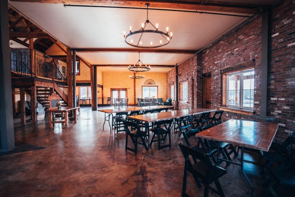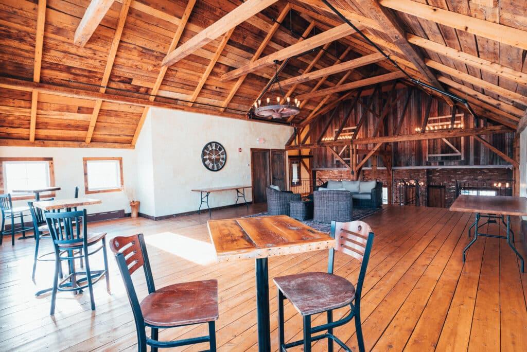 The Main Barn is an authentic 1879 post and beam barn that has been in the Lang Family for 5 generations. Many years of loving restorative work have yielded a truly magnificent structure to host your perfect wedding or event. We offer chic bathrooms with unique touches, a large deck with commanding views of the Green Mountains. To top it all off there is an expansive bluestone patio suitable for ceremonies, cocktail hour, or just enjoying the beautiful gardens.