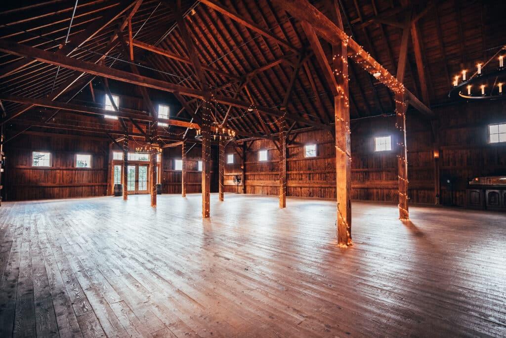 The Barn at Lang Farm has a unique setting speaking to the past agricultural heritage of Vermont. Imagine your celebration surrounded by timber beams hundreds of years old, lovingly restored to their original grandeur and beauty. Once you enter through the hand-carved castle doors one can’t help but notice the attention to detail that went into opulent bathrooms, state of the art catering work area and unique details throughout the facility that allow you to make your dream a reality.