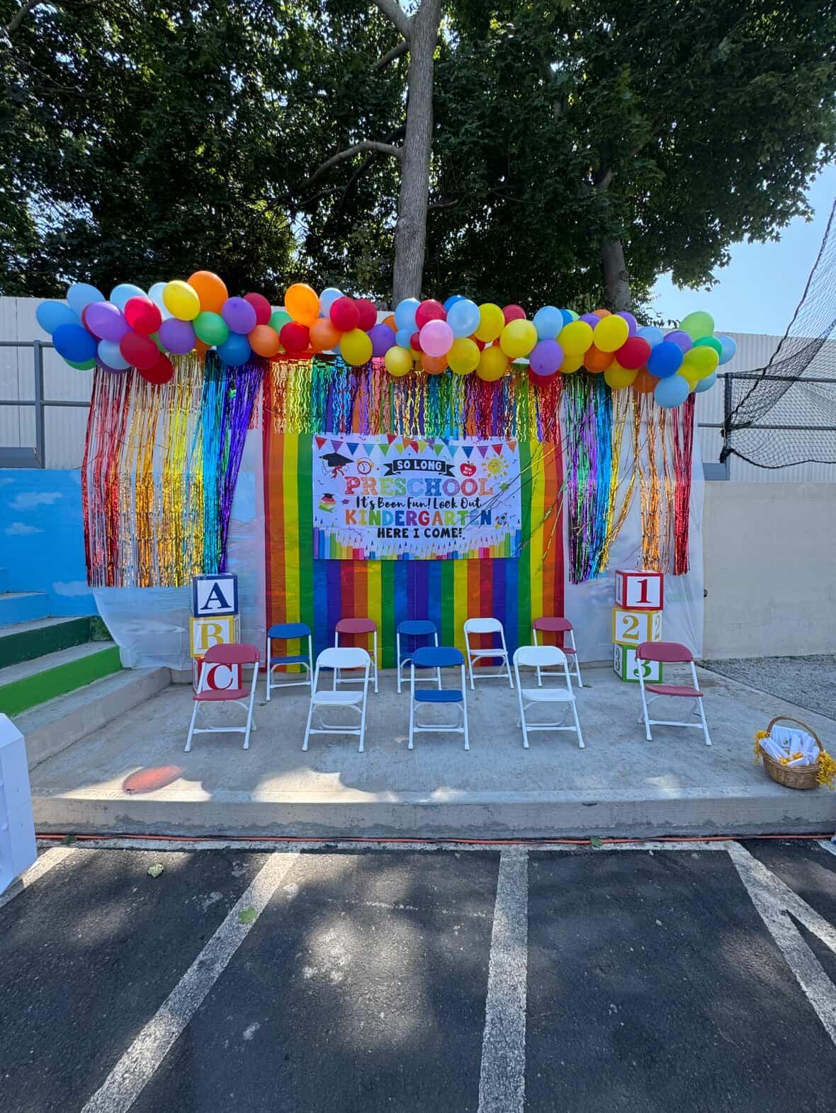We had a bouncy house for the kids, balloon art for our stage, access to the upper level and some kitchen elements and SO MUCH SPACE!!