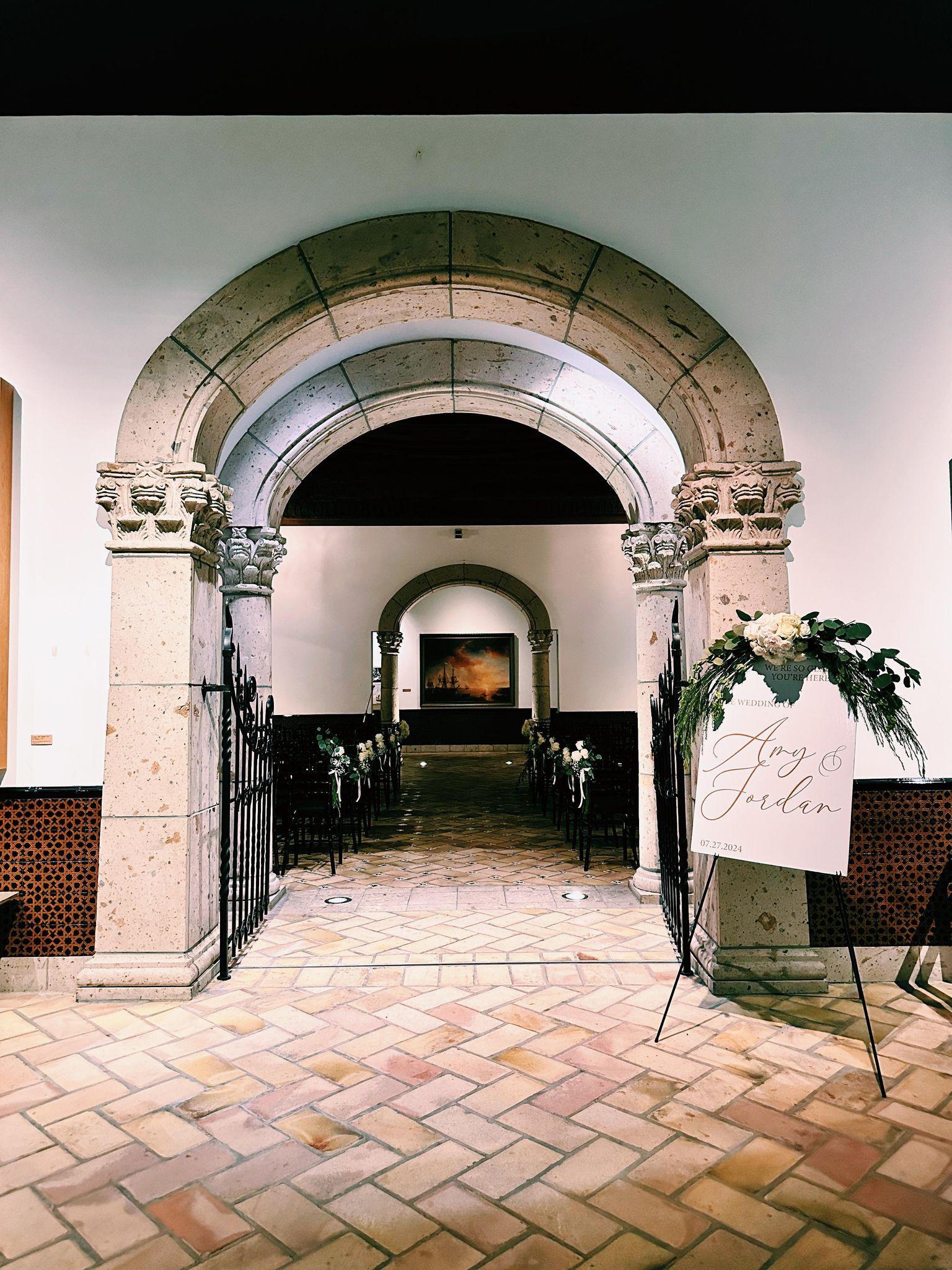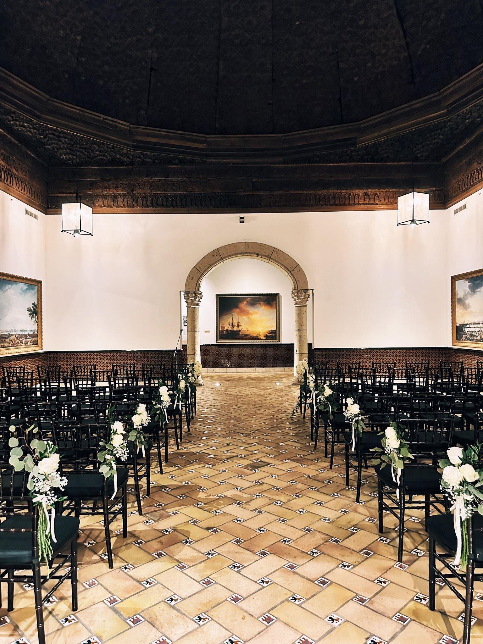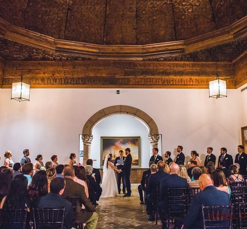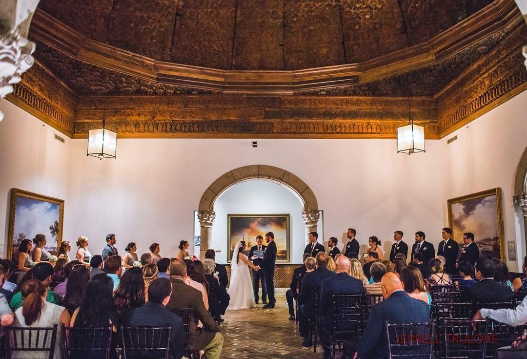 This space is the ideal setting for memorable wedding ceremonies with it's eye-catching domed ceiling, stone archways, and stunning paintings on display.