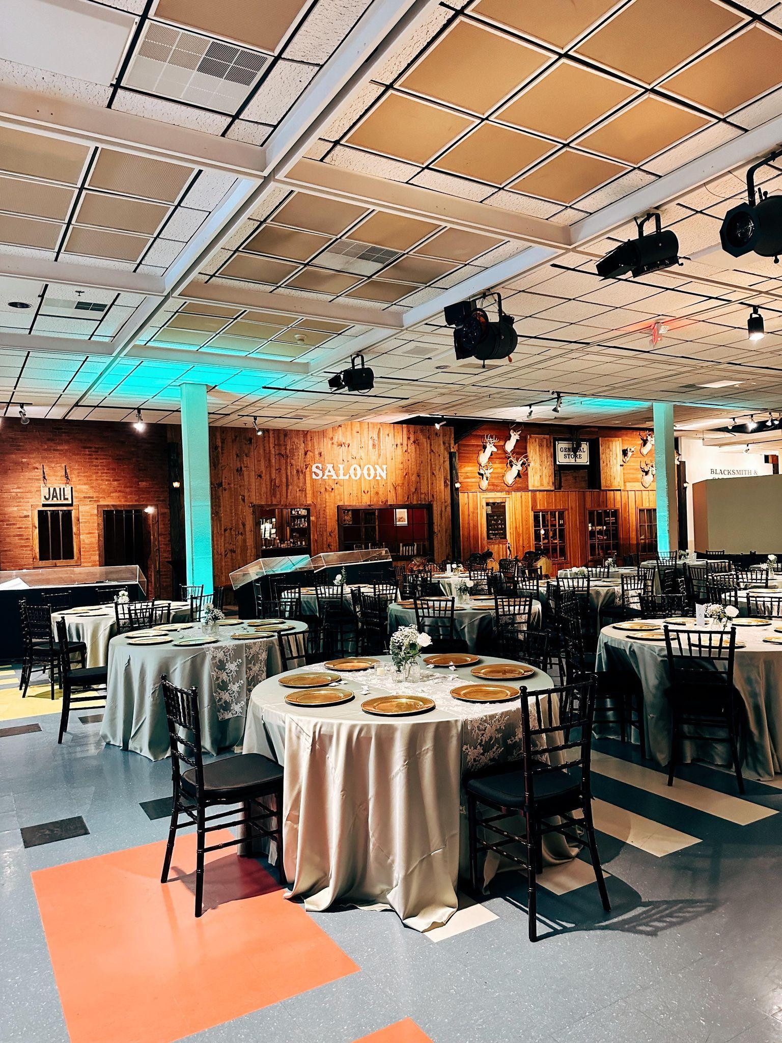 -customizable floor plan -customizable lighting -Old-Western Style Saloon as the bar -Access to all museum exhibits in the North Wing such as Dome Room, Front Porch Stage, & Kenedy Gallery