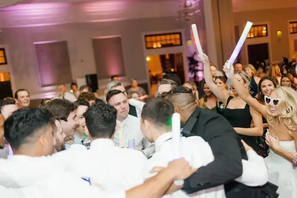 Weddings hosted in The Grand Ballroom always include a custom size dance floor, twenty-foot coffered ceilings with crystal chandeliers, mahogany doors, floor to ceiling windows, broadcast capabilities, and beautifully appointed Bridal Suites.