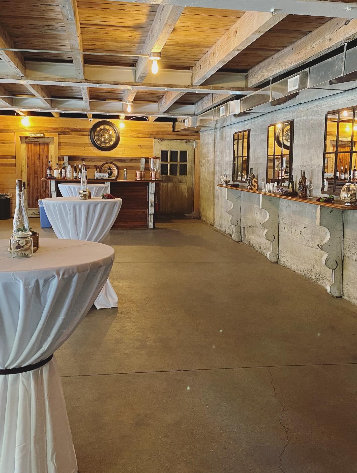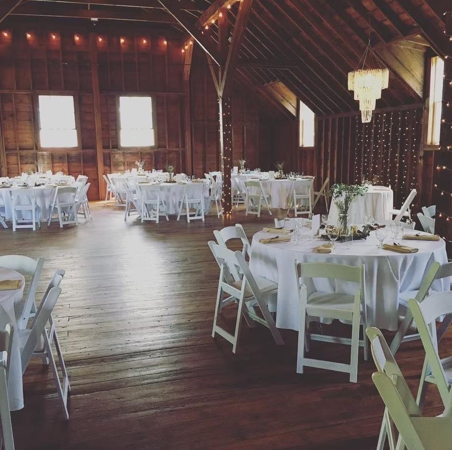 • main floor of wedding barn • 2 acres • modern indoor + handicap accessible bathrooms • heat + air-conditioning • 160 banquet chairs • 20 round guest tables • sweetheart or head table • bar + kegerators • antique dessert + gift table • caterer's prep station • buffet tables • set-up + take down of all rental items • staff for maintenance, janitorial duties + emergencies • 1 hour consultation