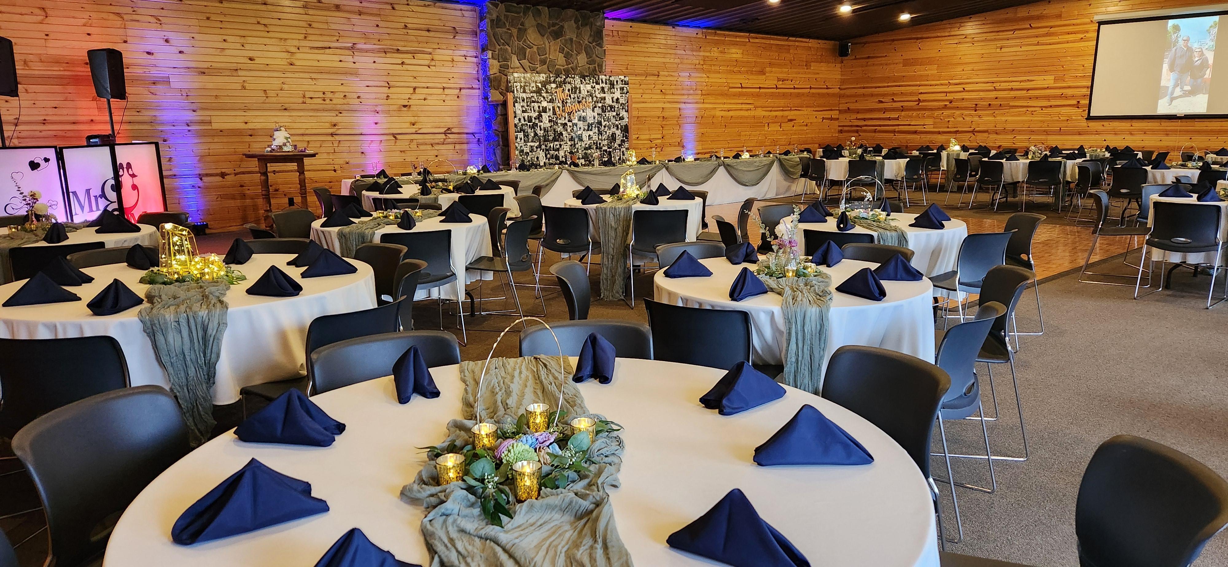 Rental of Main Lodge; Day of Event Staff; Building Access (Friday-10am-8pm & Saturday-8am-12am) Outdoor ceremony chairs are not included.