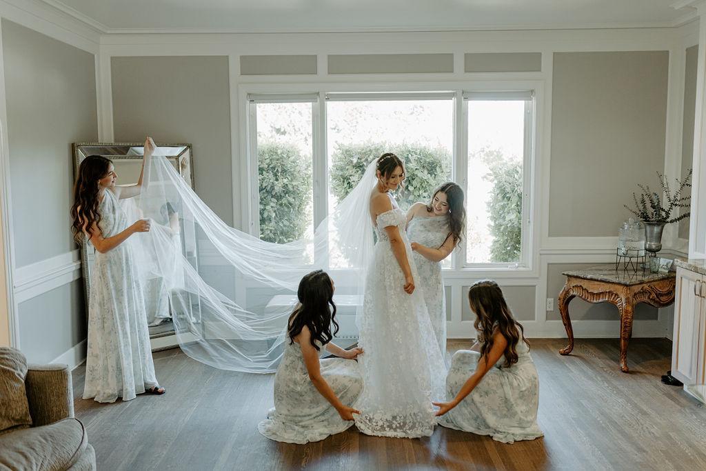 A beautiful space for you to get ready on wedding day featuring a private restroom, plenty of natural light for photos and a vanity station for hair & makeup!