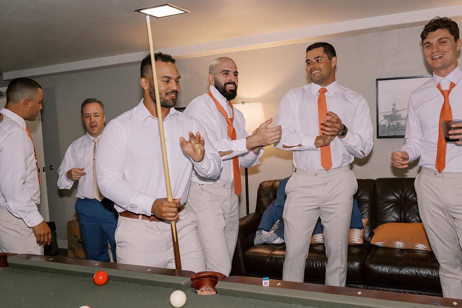 This downstairs room features a pool table, chess set, wet bar, full sized refrigerator and closet space for storage.