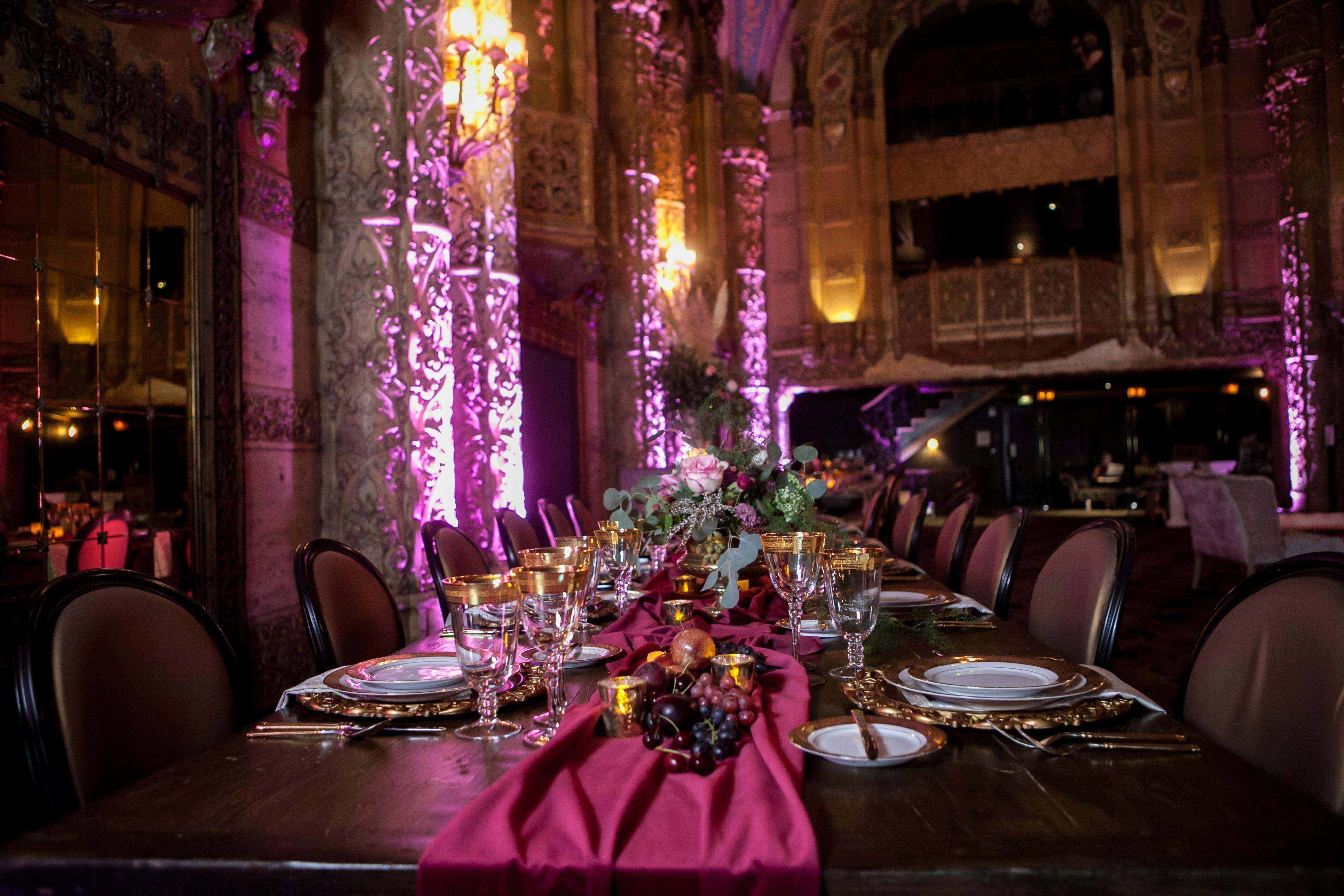 I planned and designed a luxury dinner party at The United Theater on Broadway. We started the evening with a live harp violin performance on the stage, a tour of the spectacular theater, and then we sat for dinner in The Grand Lobby. Our guests were dazzled and transported to a magical place. Ricky and the events team could not have been more supportive. It was a pleasure to team up with them and my creative team. I look forward to planning future events in this architectural gem of a property. If you are looking for a unique Los Angeles venue, look no further!!