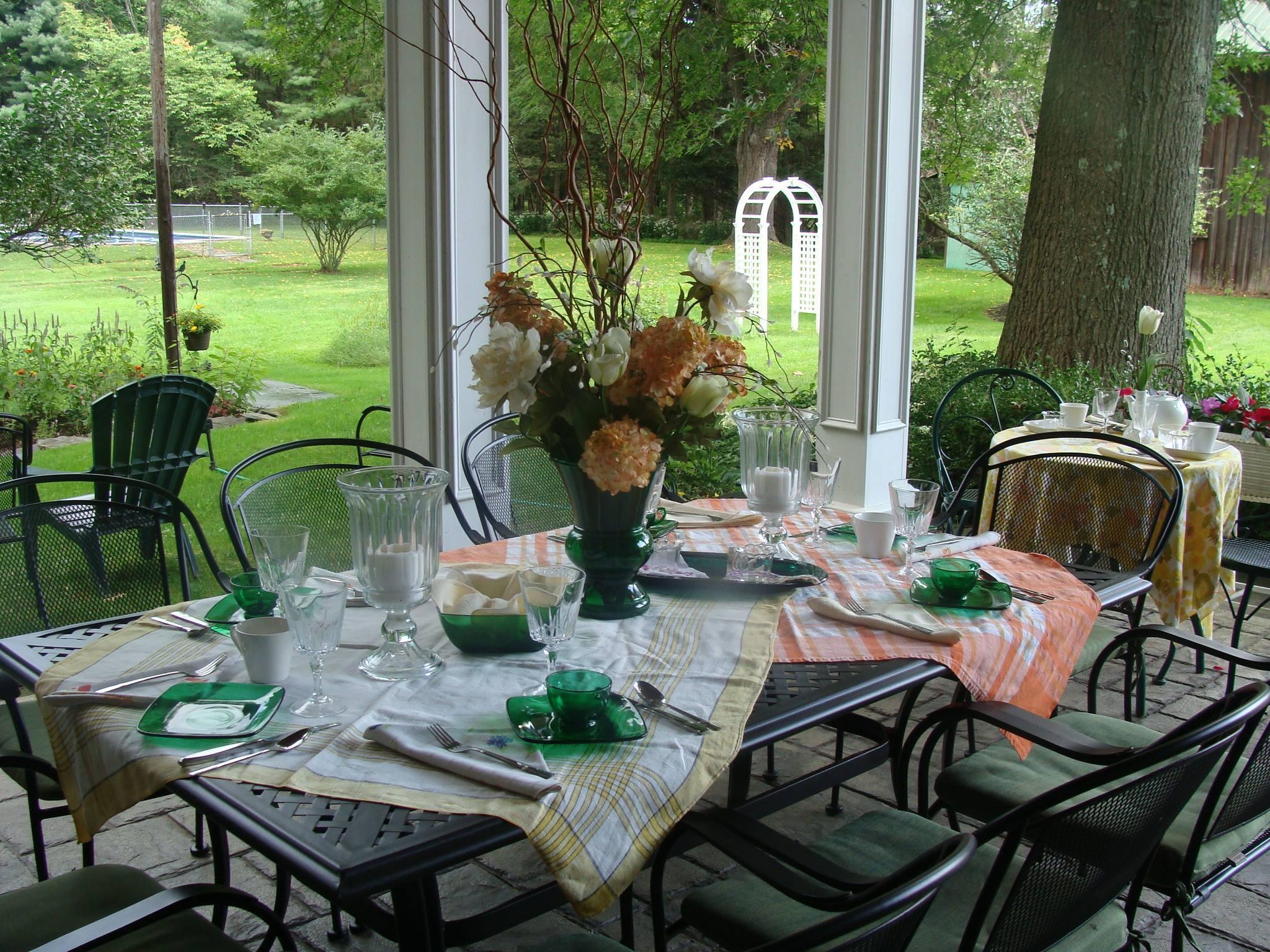 The whole property is yours to work with at the White Gazebo- You choose which to host your diners, seating, and ceremonials. The Inn rooms are negotiable for the wedding party or others, and sleeps 10-12, plus 2 in the Cottage. Both Terraces are useful for staging and catering for the Gazebo space. Seating for dining for numbers over 40 guests would be in your tent on the lawn. Kitchen and utility room are included for staging and caterers.