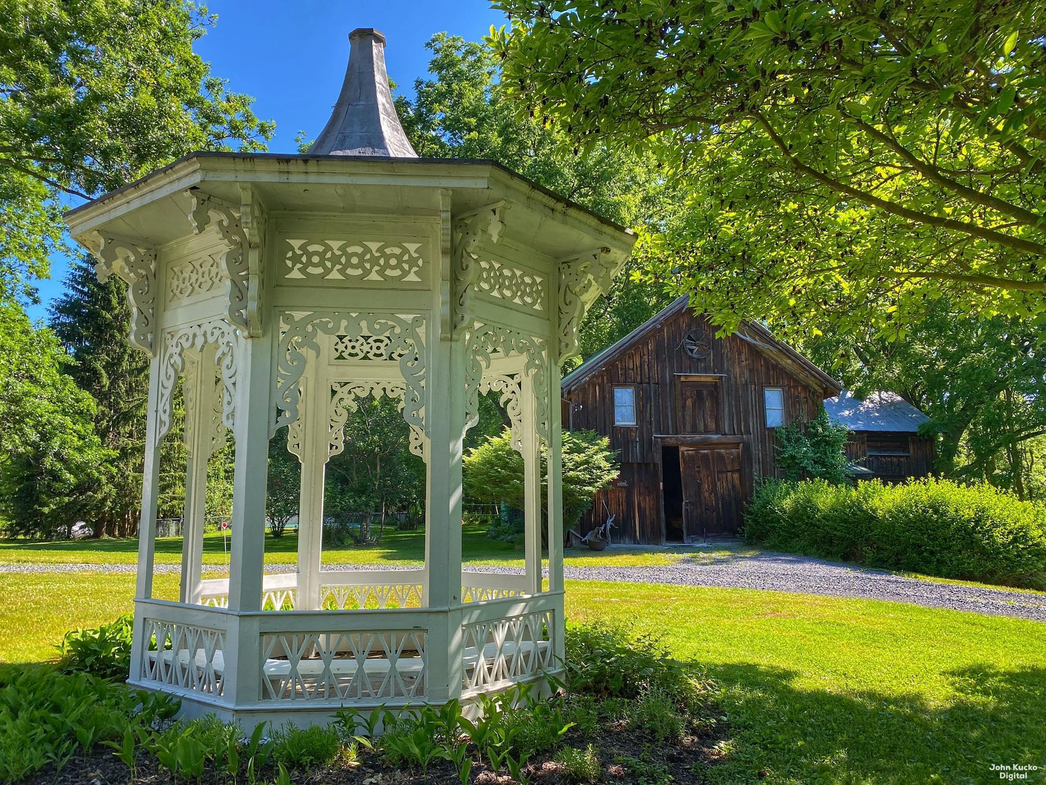 One of the most distinctive historic properties in the Finger Lakes, the former White Gazebo Inn B&B, is now open for seasonal events, celebrations and Weddings! This historic regional property is an ideal setting for bridal showers, weddings, and receptions! The White Gazebo is home to an original Victorian gazebo built in 1853, as well as a picturesque period barn, sprawling pastures, and quiet woodland privacy. The regal, historic home includes a private terrace and patio for gathering and reception cuisine, and extensive grounds for walking, or just sitting and sipping wine and enjoying the bounty of the Finger Lakes. Flowers bloom all around! The Inn is a charming, cozy historic home with a recent addition with key amenities- It sleeps 10-12 with a Master Bedroom suite, a cozy family room, and a utility room perfect for staging. The upstairs has two bedrooms and a shared bathroom with windows facing the historic gazebo. The Inn is negotiable with a wedding or reception booking.