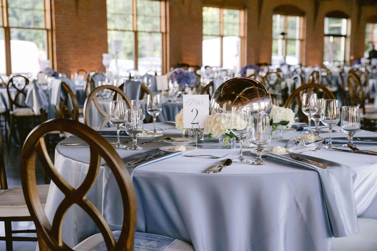 A wedding at The Wire Event Center includes access to a 10,700 sq. ft. indoor space and a 6-acre lawn for outdoor ceremonies. Tables, chairs, and getting ready spaces are provided. Hotel blocks at the James Newbury come complimentary, and on-site dining options are available. Catering is handled by Mazzone Hospitality. Add-ons like rehearsal dinners, farewell brunches, and afterparty packages are available to customize your event. The venue blends industrial charm with scenic waterfront views.