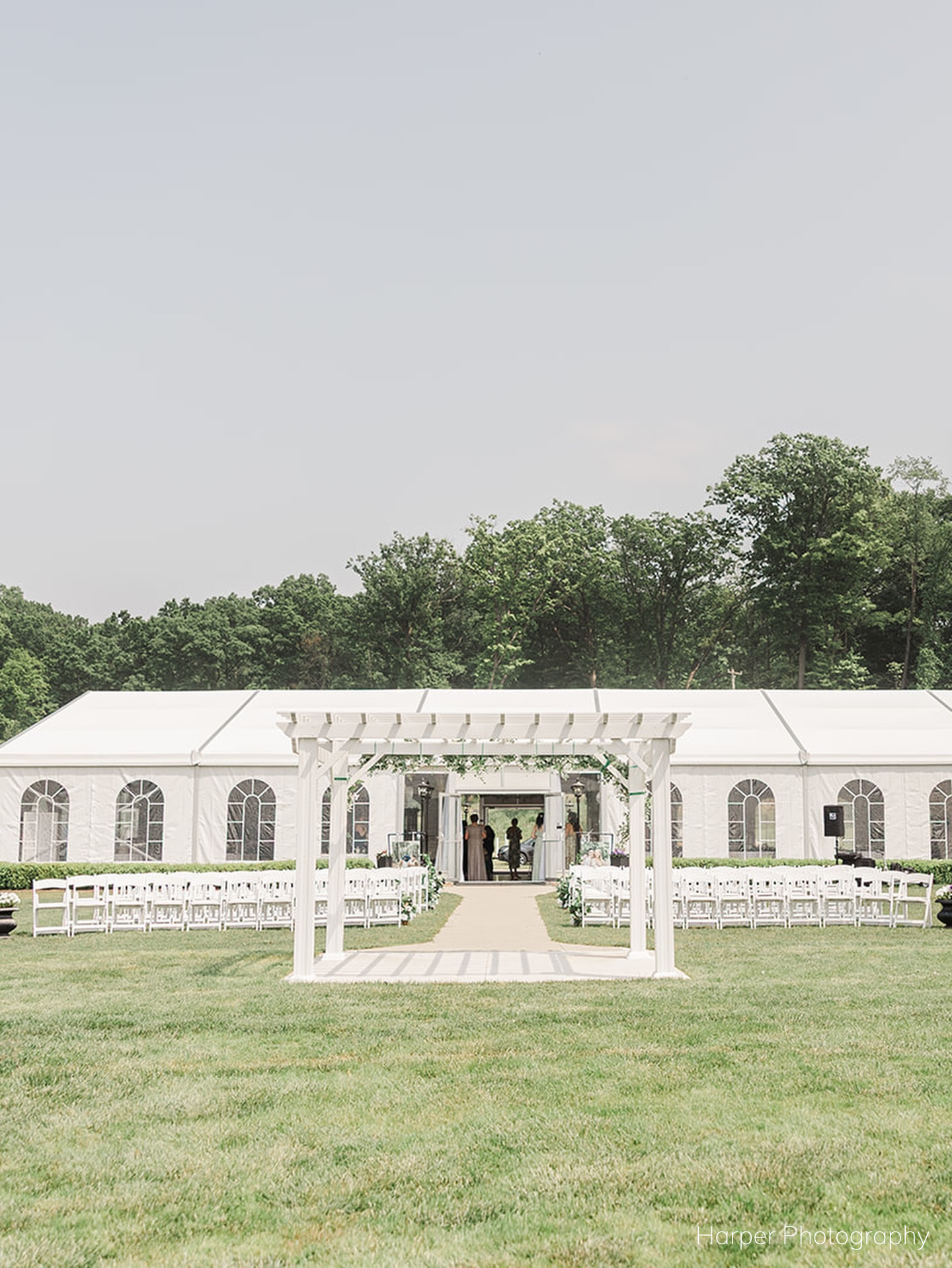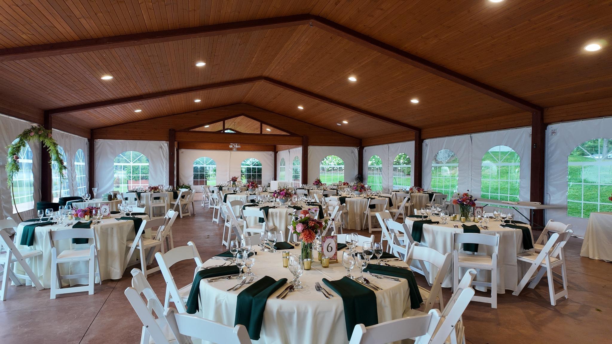 The Lakeview Tent is an elegant lakeside reception space featuring a fully covered roof/adjustable sides and parquet flooring, offering comfort and weather protection while maintaining an open, airy feel. Located steps from Lake Walden with a private lakeside ceremony site, the neutral design allows couples to fully personalize the space and make it their own. Ideal for large celebrations with scenic views and seamless flow.